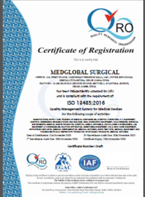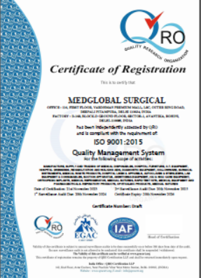 Medglobal Surgical is known to be one of the leading manufacturer, supplier and exporter of Medical & Surgical Equipment, Hospital Supplies, Laboratory Equipment, devices and Instrument.The highly advanced state-of-the-art infrastructural facility at Medglobal Surgical has been equipped with all the machinery and equipment, needed for the facilitation of the attainment of a number of the firm’s predefined targets. The facility’s regular up-gradation helps us extend our reach in the market and to maximize our productivity. Our products are manufactured at state-of-the art production facilities in India, with capacity to produce large quantities. We are ISO 9001:2008 and ISO 13485:2016 Certified and our products are CE Marked.